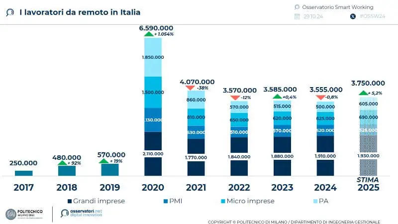 Secondo l’Osservatorio Smart Working del Politecnico di Milano: